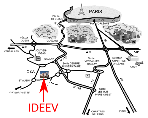 Par GoogleMap ou taper “IDEEV, 12 route 128, Gif-sur-Yvette” (48.7141, 2.1598) ou OpenStreetMap